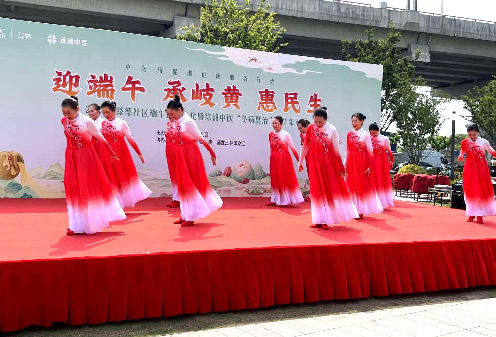 本次活动共设置了八个板块,包括端午文化知识有奖问答(免费发放艾草、菖蒲),投壶射五毒游戏(免费发放端午长命五彩绳),中药香囊DIY手工区(中医药文化交流互动),三伏贴、耳穴压丸体验区(中医药冬病夏治适宜技术体验),上海曙光医院、市中医院、专家把脉咨询,口腔医师口腔健康检查等,还有精湛的舞台表演。